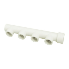 Коллектор PPR Blue Ocean 40х25 мм на 4 выхода выполнен цельнолитым из высококачественного полипропилена в белом классическом цвете. Диаметр подключения к присоединяемым трубам составляет 40 мм, диаметр выходов - 25 мм. Монтаж производят путем использования полифузной сварки в сантехническом шкафу. С одной стороны коллектор устанавливается на центральный стояк, с другой его стороны крепится заглушка или дополнительный прибор. Учитывая все особенности изделия, можно быть уверенным в надежной защите системы от протеканий.